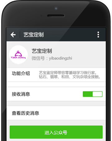 扫描二维码关注艺宝珠宝定制官方微信公众平台,微信下单,在线咨询两不误。